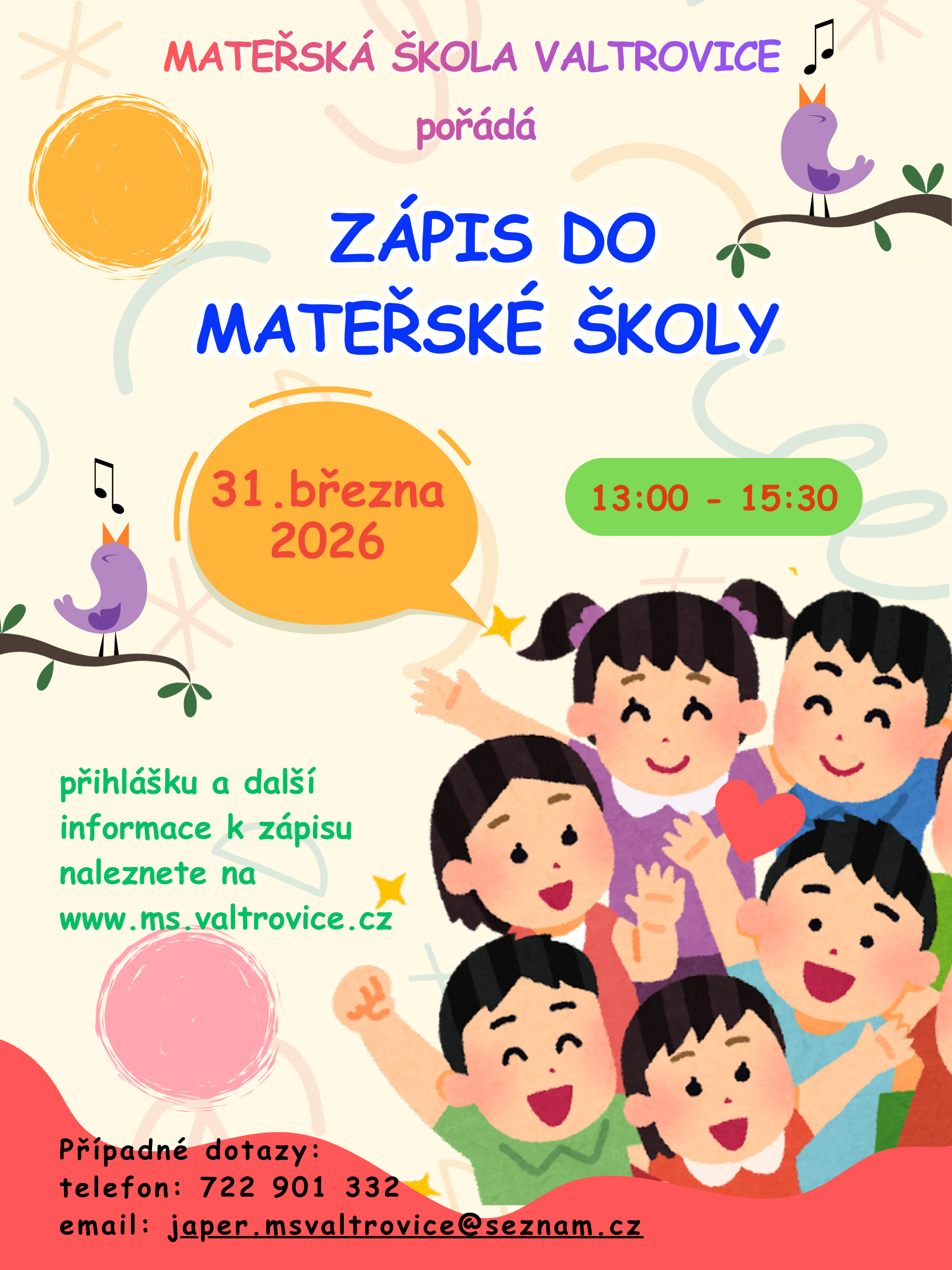 oznamuje, že termín konání zápisu dětí do mateřské školy